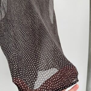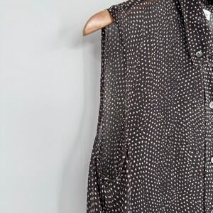 Calvin Klein Brown Polka Dot Sleeveless Sheer Silk Button Front Blouse Sz 14