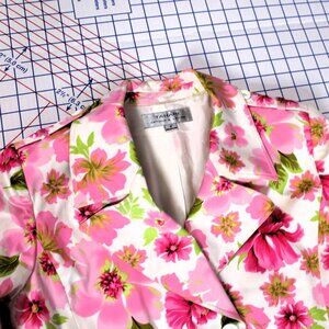 Tahari Pink Floral Trench Coat, Size 8, AS IS