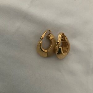 Vintage Trifari clip earrings in gold tone and gold stone design. These are signed Trifari on the back of the clip. Perfect for adding elegance.