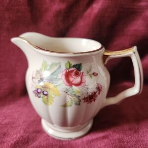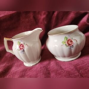 pretty vintage Sadler England cream and sugar bowl set, hand painted with gold edge accents. excellent condition