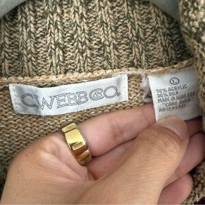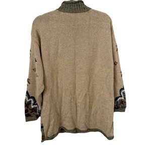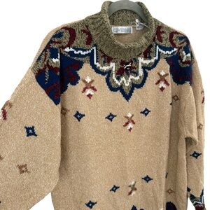 Vintage 90s Boho Western Gypsy Roll Neck Silk Blend Tan Blue Sweater Large