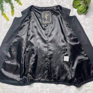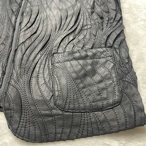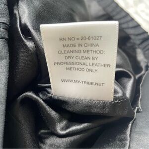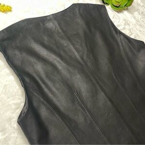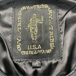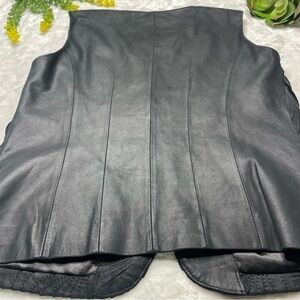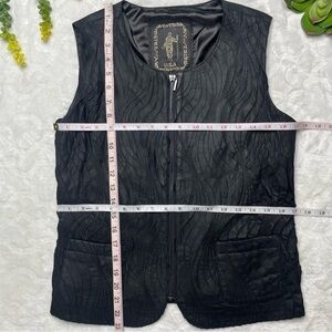 My Tribe Embroidered Leather Zip Front Sleeveless Vest in Black Womens Medium