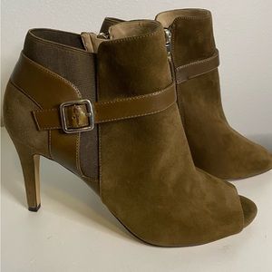 🍄 Marc Fisher Shimmee Peep Toe Booties Ankle Boots Taupe Suede size 9.5