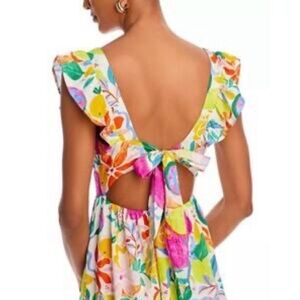 Vibrant floral print. Square neckline. Ruffled sleeves. Perfect for summer.