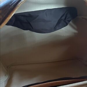 Elegant Louis Vuitton tote with signature monogram pattern with extra/shoe storage accessed from outside the bag. Rich brown leather. Perfect for everyday use. Perfectly clean fabric lined interior.