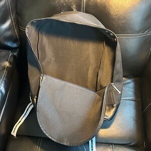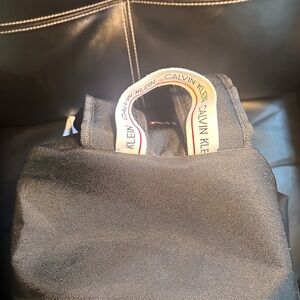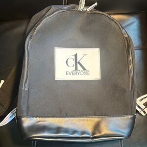 Unisex backpack. Adjustable canvas straps with "Calvin Klein" logo. 4" top carry tandle with logo. NO exterior or interior pockets.