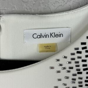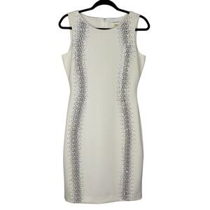 Calvin Klein Sheath Midi Scuba Dress Embellished Ivory Crystal Sleeveless Size 6