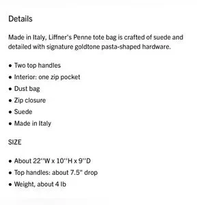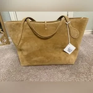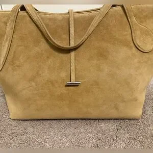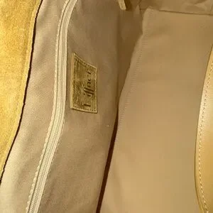 NWT Liffner Penne Suede Tote Bag in Beige. This bag is quite large—measurements listed in 2nd pic. This has never been used but arrived without any stuffing & laying flat. I think the bag would look much better if it were cleaned & brushed. I’ll try to do that as soon as I get a chance. Selling because I bought another slightly smaller tote that I prefer. Liffner dropped “Little” from their brand name in 2025.