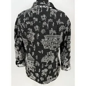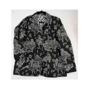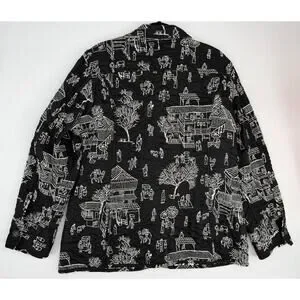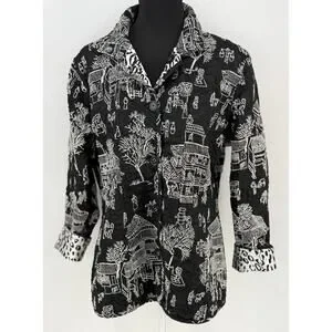 Chicos Pagoda Asian Black White Reversible Embroidered Jacket 4 XXL/20