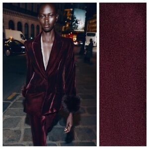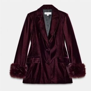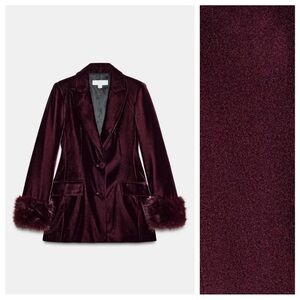 ZARA VELVET BLAZER WITH FAUX FUR CUFFS