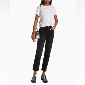 Re/done 70s Stove Pipe Black High-Rise Stretch Raw Hem Crop Jeans, Size 28