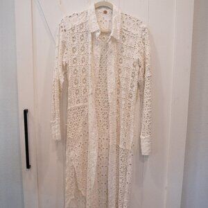 NWT Free People Women's White One Yesenia Floral Lace Crochet Button Maxi Top