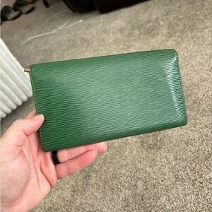 Authentic Louis Vuitton Vintage Green Epi Leather Sarah Long Wallet