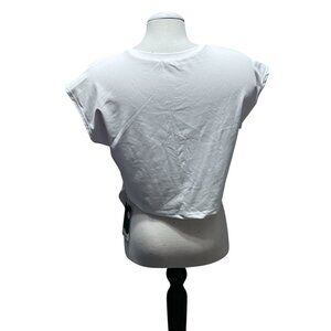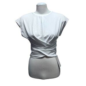 Halara Short Cap Sleeve Tie Wrap Waist Casual Shirts Sz Large White Stretchy