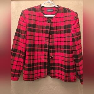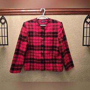 Vintage Red and Black Plaid 100% wool Blazer