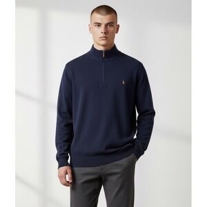 Polo Ralph Lauren Men's 3XLT Navy Blue Estate Rib Quarter Zip Pullover Sweater