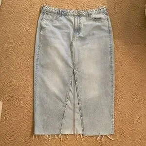 H&M Long denim maxi skirt with slit and raw edge hem