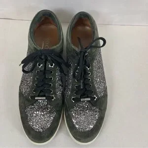 Jimmy Choo Women’s Size 41 Gray Suede & Black Glitter High-Top Sneakers