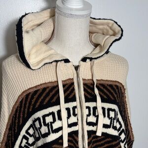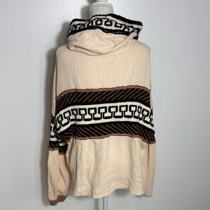 We The Free Women's Cream and Brown Hooded Sweater Large