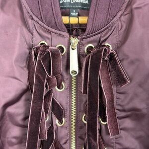 Sam Edelman Zip Up Jacket w Velour Details in Wine. Size Small.