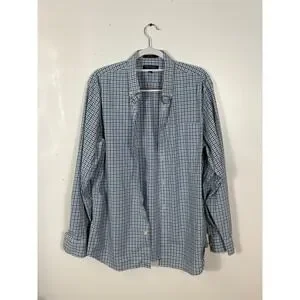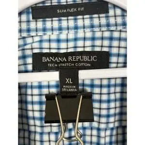 Banana Republic Mens XL Slim Flex Fit Tech Stretch Cotton Blue Check Shirt