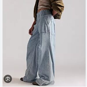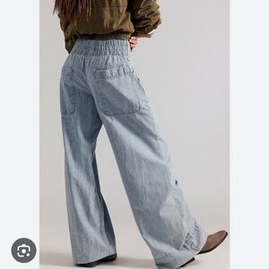 Free People We The Free Breezy Pull On Wide Leg Denim Jeans. Sz L NEW