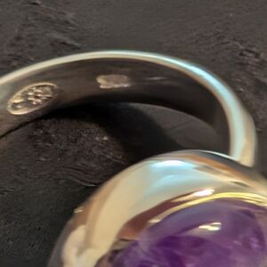Elegant silver ring featuring a stunning amethyst gemstone. Perfect for adding a touch of sophistication to any outfit.