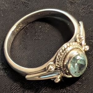 This elegant women's ring features a stunning genuine blue topaz perfect for any occasion. The intricate design adds a touch of sophistication to your jewelry collection. Stamped 925 and is solid sterling silver.