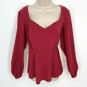Torrid Womens Crepe Long Sleeve Peplum Blouse Tunic Top Sz 0 US 12 L Biking Red