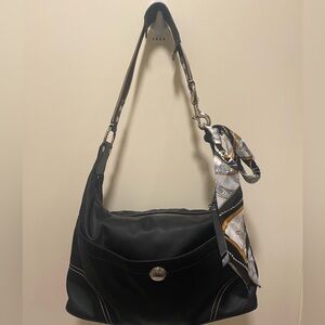 Vintage Coach Hampton Elegant Black Satin Shoulder Bag with Scarf Accent