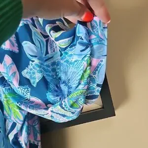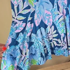 Step into style with this Lilly Pulitzer tropical floral mini wrap dress. Featuring a vibrant mix of blue and green, it's perfect for any occasion. The wrap design ensures a flattering fit. No defects or fading.
