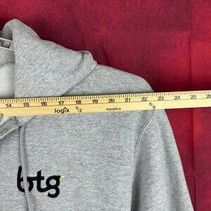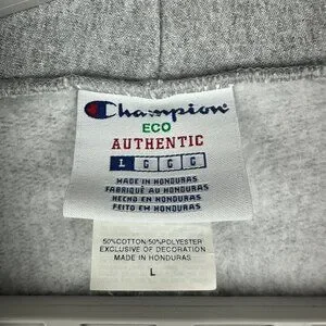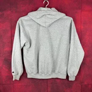 CHAMPION UNISEX GREY ZIP-UP HOODIE WITH BTG LOGO, 2 POCKETS, FLEECE INTERIOR, L