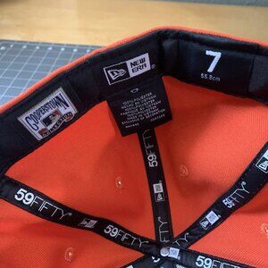 The New Era Hat Mens size 7 Club Launch Pack Hatclub x Houston Astros Prototype Logo Cap is a premium baseball cap officially licensed by Major League Baseball. Designed in collaboration with the Houston Astros, this orange cap features the unique prototype logo, making it a must-have item for fans of the team.