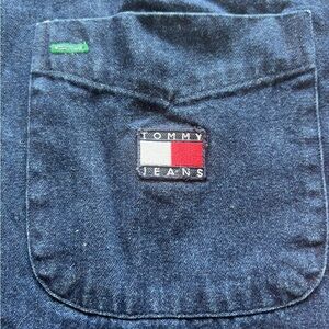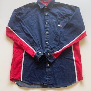 EUC Early 90-2000's Tommy Hilfiger Navy and Red Casual Denim Shirt Size L (G3)