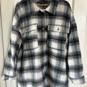 Stylish plaid dress. Features long sleeves. Button-up front. Perfect for casual wear.