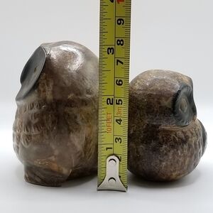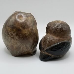 Vintage Owl Collection Otagiri Stoneware Bronze Pair Cryptomeria Wood Figurine