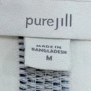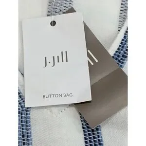 New with tags Pure Jill blue and white striped split neck top in 100% cotton, size M. Lightweight textured cotton with relaxed drape and stitched neckline detail creates an easy, breathable silhouette. Effortless for spring and summer—perfect for travel, casual days, or laid-back coastal styling.