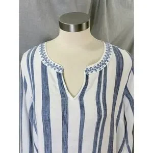 NWT Blue White Striped Embroidered 100% Cotton Tunic Top NWT Resortwear Vacation