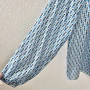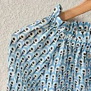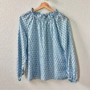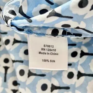 Ann Mashburn Silk Blue Floral Print Blouse Top Size Small Long Sleeve High Neck