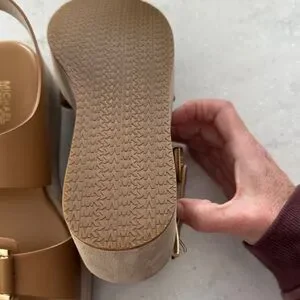 Elegant brown sandals with bold buckle design. Ideal for versatile styling.