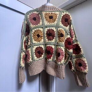 HANDMADE Chunky Knit Granny Square Floral Patchwork Sweater - Multicolor