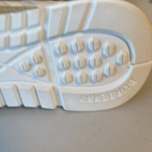 White fabric stripe up center to top of tongue