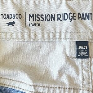 Toad & Co Mission Ridge Pant Mens 36x32 Lean Fit Khakis Organic Cotton Stretch
