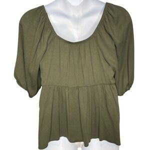 Torrid Womens Olive Green Smocked Puff Sleeve Top Size 1X Boho Flowy Romantic