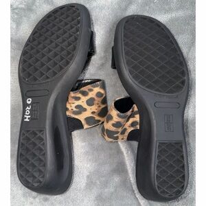 Chic leopard print with sleek black strap. Comfortable and stylish. Never worn