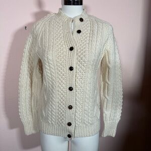 Vintage 1950’s Cable Knit Irish wool Cream Cardigan sweater