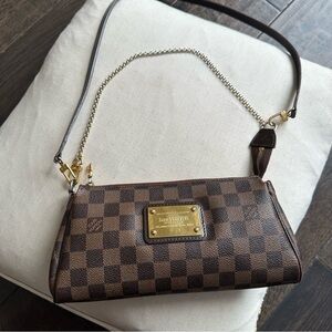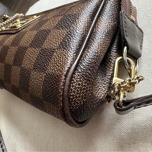 Louis Vuitton Eva Damier Ebene Canvas Pochette Chain Clutch Cross Bag