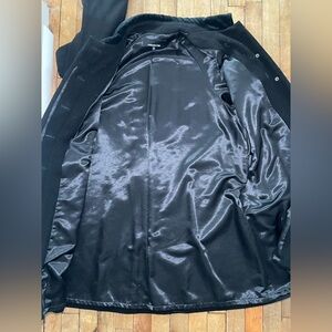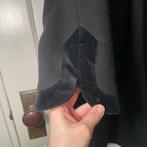 As you can see it has the most darling details with the velvet collar and button, as well as the velvet cuff bands. Has a clean front with the concealed placket and slanted welt pockets.
