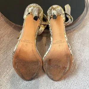 Chic snakeskin heels with a stylish ankle strap design. Perfect for elegant occasions.