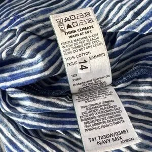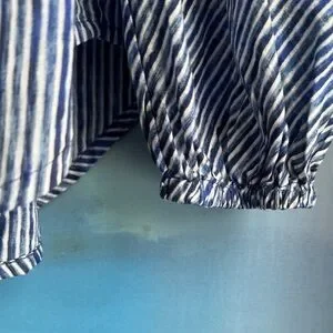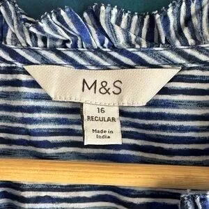 Discover elegance with this navy striped blouse, perfect for versatile styling. Enjoy a blend of comfort and chic design. Size 16 tag, fits like a large. NWOT.